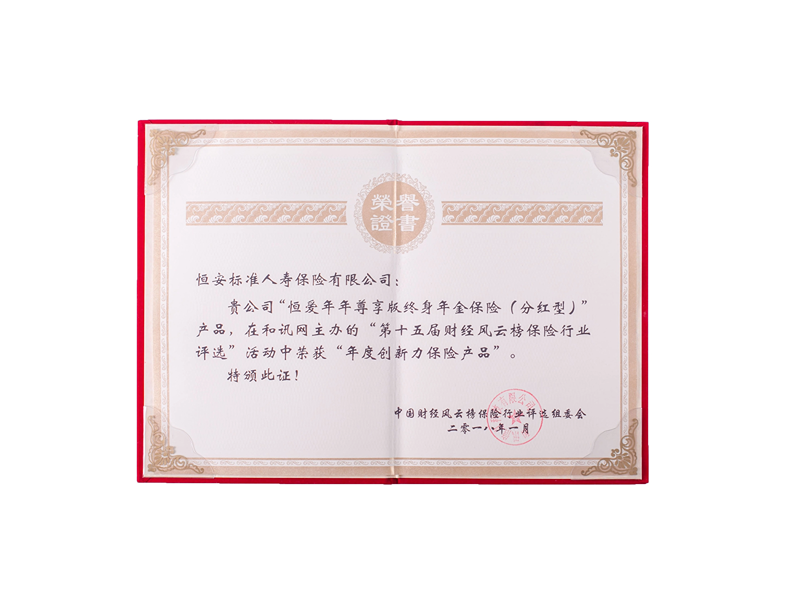 • “恒安標準恒愛(ài)年年尊享版終身年金保險(分紅型)”